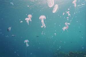 tranquil clear water. Such moments are not of our choosing, as jellyfish