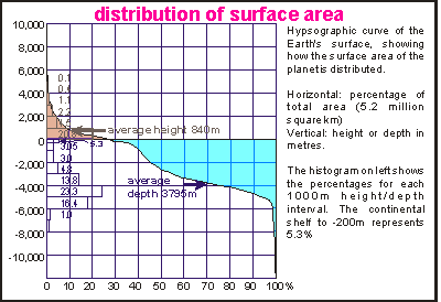 the lefthand margin of the hypsographic curve above, a histogram is shown